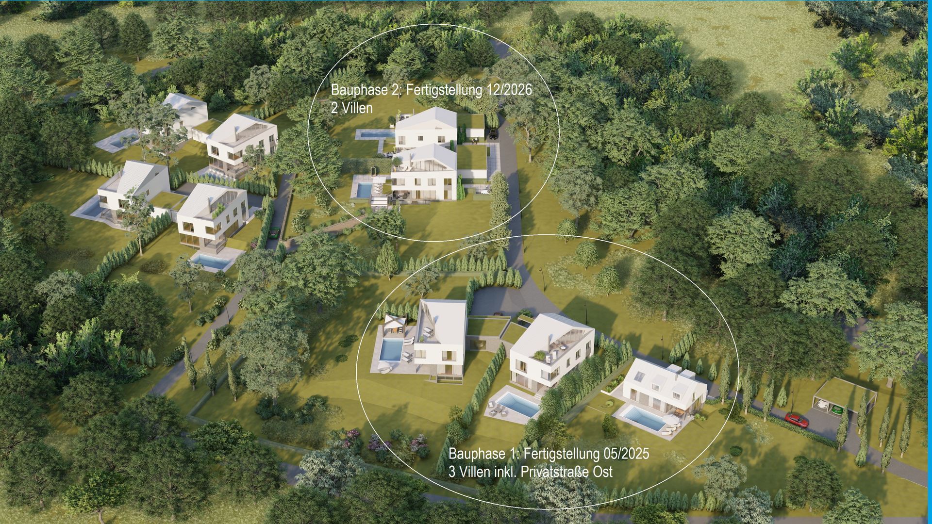 Auf über 24'000 m2 entstehen bis zu 9 exklusive Villen in moderner Architektur.